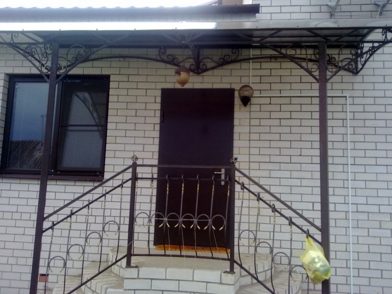 На самом деле, козырек - это не только красивый элемент дизайна, но и функциональная деталь фасада Вашего дома. Он защитит вход в Ваш дом от осадков, падающих листьев, палящего солнца. Никакого снега на крыльце зимой и приятная тень летом - что может быть приятнее! А может быть, у Вас есть терраса, на которой можно отдыхать после тяжелого трудового дня? Под кованым навесом она станет еще уютнее и будет надежно защищена от дождя.